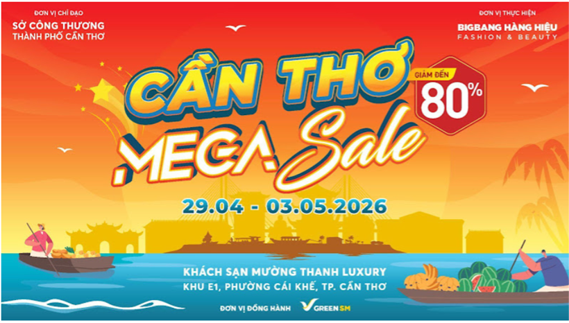 Theo ban tổ chức, “Cần Thơ Mega Sale” lần 2 năm 2026 sẽ diễn ra từ ngày 29/4 đến 3/5/2026 tại Khách sạn Mường Thanh Luxury Cần Thơ. Sự kiện được kỳ vọng trở thành điểm nhấn trong chuỗi hoạt động kích cầu tiêu dùng dịp lễ 30/4 và 1/5, góp phần phục hồi và thúc đẩy thị trường nội địa trong bối cảnh còn nhiều biến động.