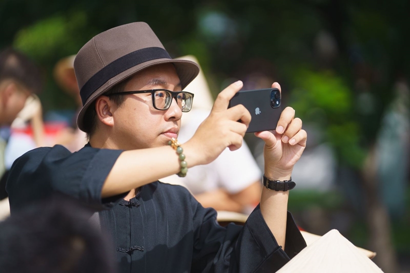 | Du khách tranh thủ lưu lại những bức ảnh về kiến trúc của khu vực người Hoa khi đi tham quan. |
