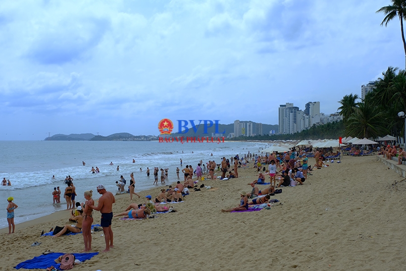 | Du khách quốc tế trên bãi biển Nha Trang. Ảnh: NH. |