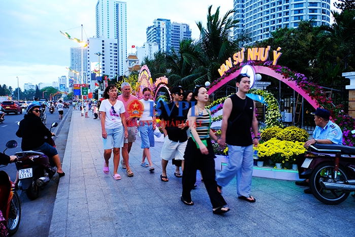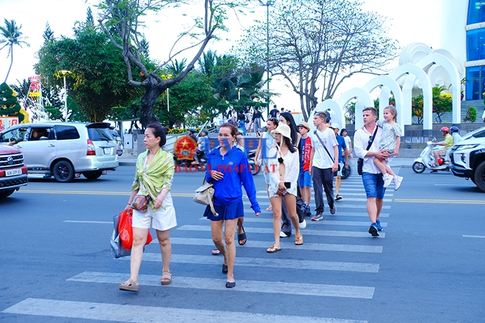 | Du khách trên đường phố Nha Trang ngày mùng 5 Tết. Ảnh: NH. |