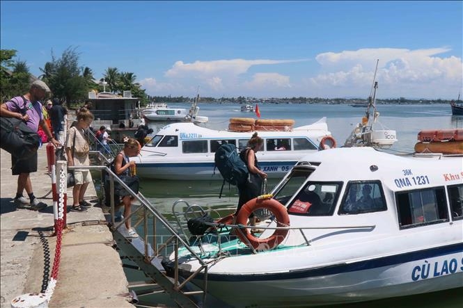 | Ca nô cao tốc đưa du khách từ đất liền đến các bãi biển Cù Lao Chàm. |