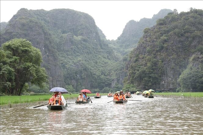 | Du khách trong và ngoài nước thích thú với vẻ đẹp sông nước của Khu du lịch Tam Cốc - Bích Động. |