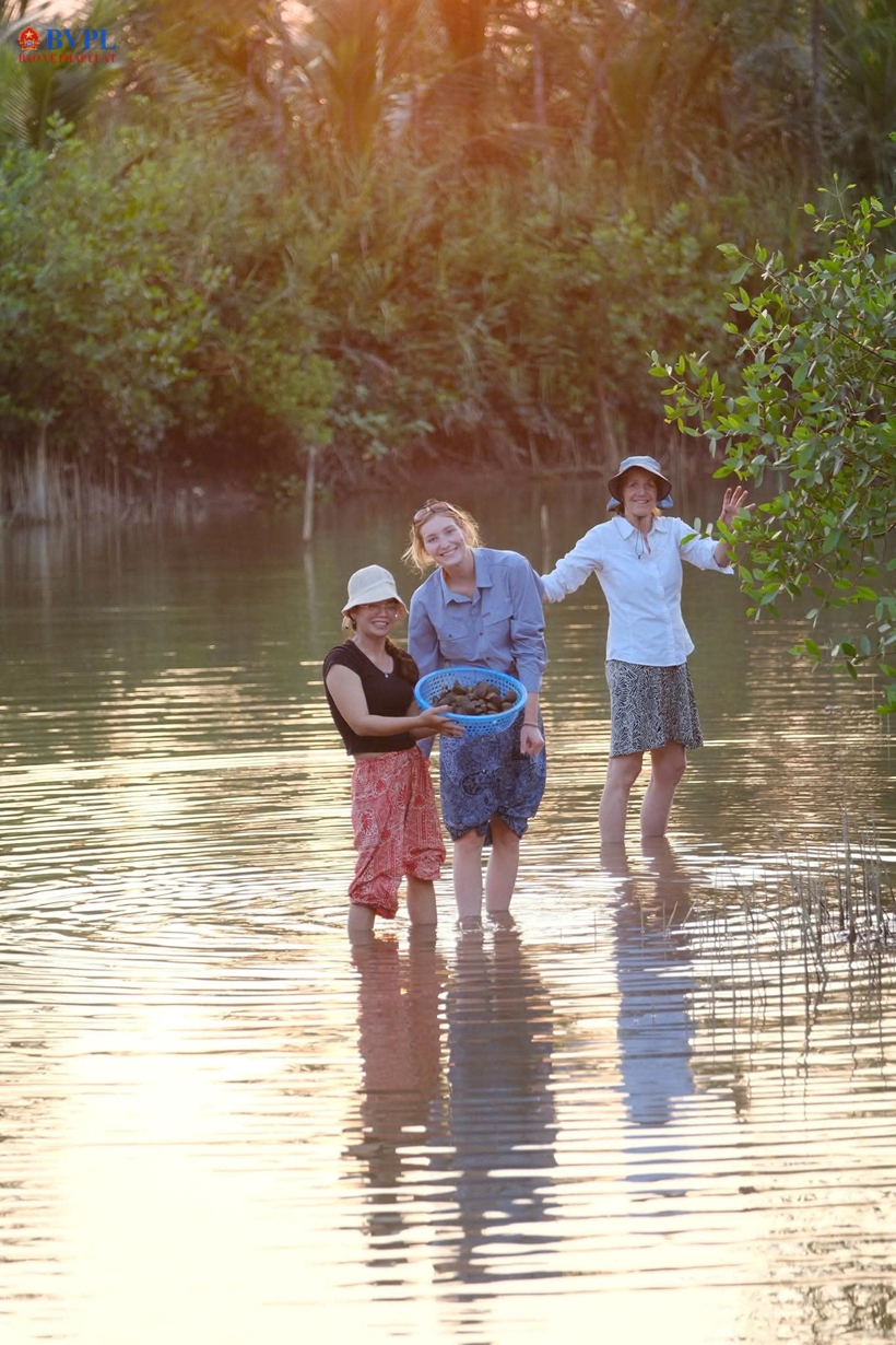 | Du khách Việt Nam và du khách nước ngoài đến du lịch, trải nghiệm bắt ngao. |