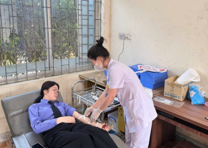 | Đồng chí Hà Diệu Linh hiến máu. |