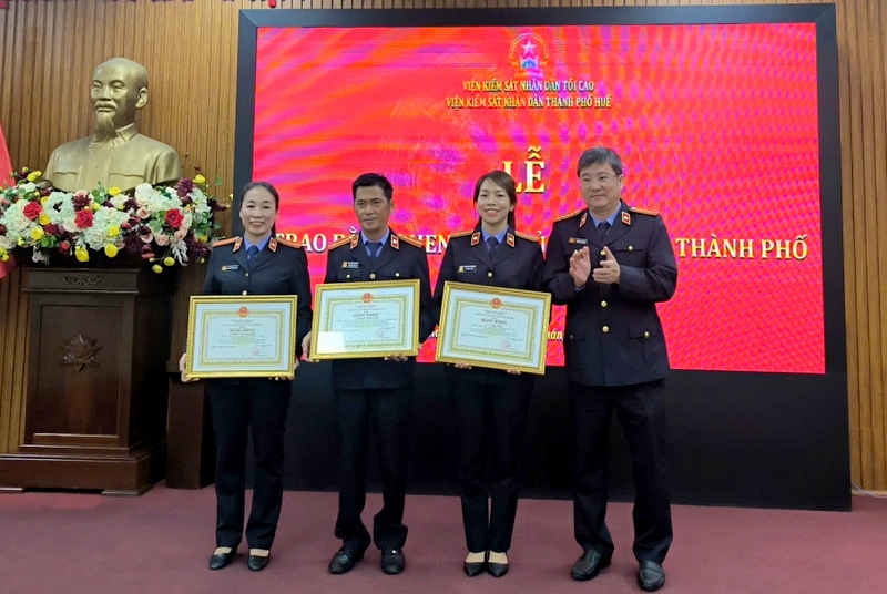 Tại Quyết định số 370/QĐ-UBND ngày 26/1/2026, Chủ tịch UBND thành phố Huế tặng Bằng khen đối với 2 tập thể và 3 cá nhân thuộc VKSND TP Huế. Đây là phần thưởng quan trọng, ghi nhận những đóng góp xuất sắc trong công tác thực hành quyền công tố và kiểm sát hoạt động tư pháp năm 2025.