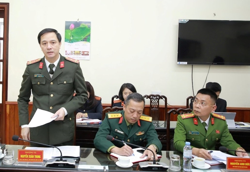 | Thượng tá Nguyễn Xuân Trung - Phó Bí thư Đảng uỷ, Phó Giám đốc Công an tỉnh, Khối phó Khối thi đua số 5 phát biểu tham luận. |
