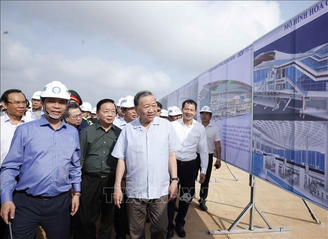 | Tổng Bí thư Tô Lâm thăm Dự án Cảng Hàng không quốc tế Long Thành. Ảnh: Thống Nhất/TTXVN |