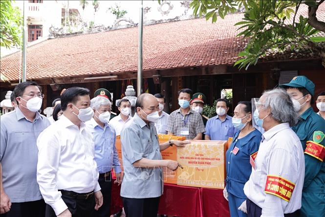 Nhân dịp này, Chủ tịch nước Nguyễn Xuân Phúc trao 40 tỷ đồng từ nguồn xã hội hóa tặng Đảng bộ, chính quyền và nhân dân thành phố với niềm tin tưởng nhân dân Thủ đô sẽ tiếp tục đồng lòng, chung sức vượt qua đại dịch trong thời gian sớm nhất.