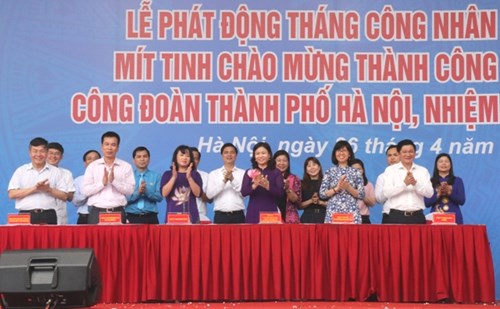 Tại lễ phát động, 5 doanh nghiệp là: Công ty TNHH Ba Huân, Công ty cổ phần hỗ trợ thanh toán Việt Phú, Công ty TNHH Trung Thành, Công ty cổ phần Nhất Nam - Siêu thị Fivimart, Bệnh viện Đa khoa quốc tế Bắc Hà đã ký kết với LĐLĐ TP chương trình phúc lợi cho đoàn viên, người lao động.