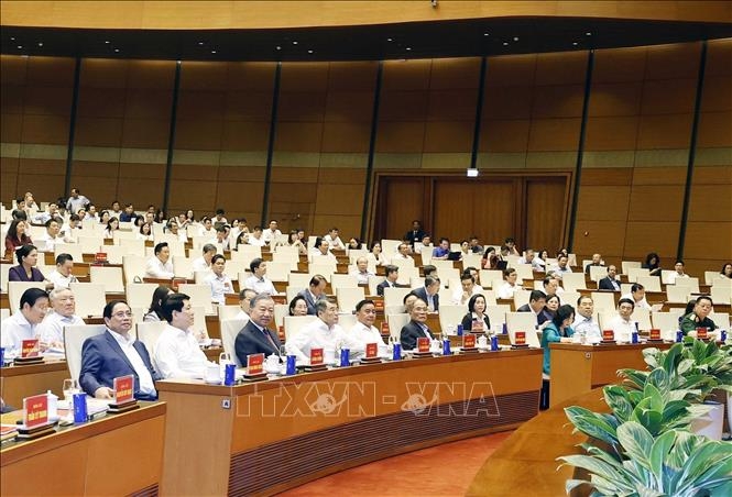 | Các đại biểu tham dự Hội nghị tại điểm cầu chính Hội trường Diên Hồng, Nhà Quốc hội. |