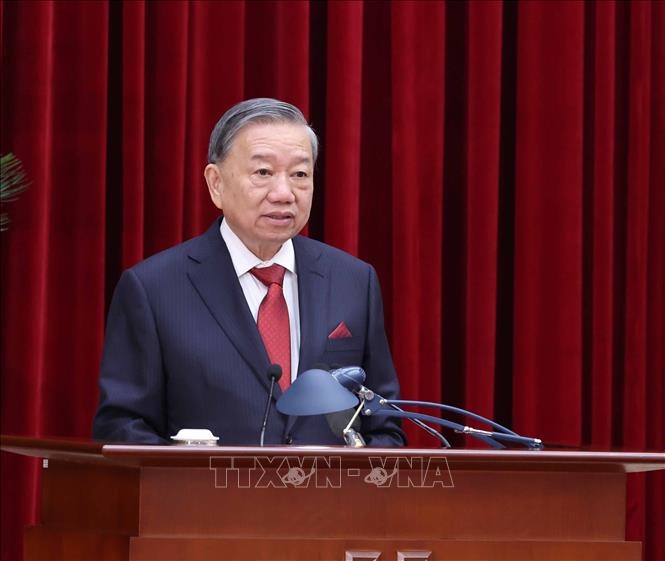 Tổng Bí thư Tô Lâm phát biểu khai mạc Hội nghị lần thứ mười ba, Ban Chấp hành Trung ương Đảng khoá XIII. Ảnh: Thống Nhất/TTXVN |