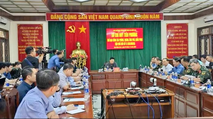 | Phó Thủ tướng Trần Hồng Hà họp khẩn tại Sở Chỉ huy tiền phương để chỉ đạo khắc phục hậu quả của bão số 13. |