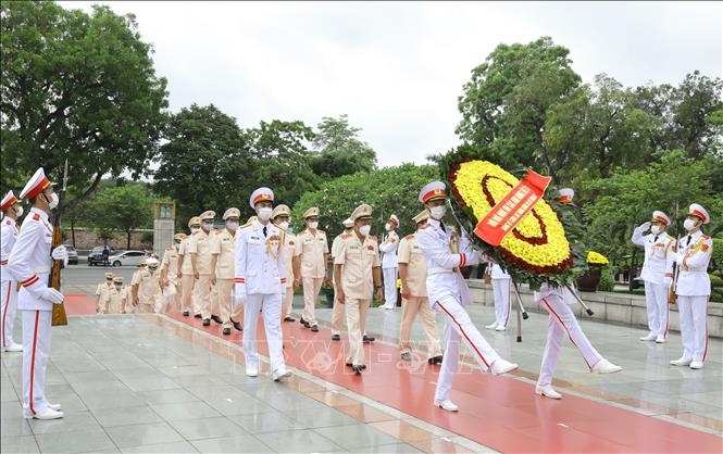 Đoàn đại biểu Đảng uỷ Công an Trung ương và Bộ Công an tưởng niệm Chủ tịch Hồ Chí Minh. Ảnh: Dương Giang/TTXVN