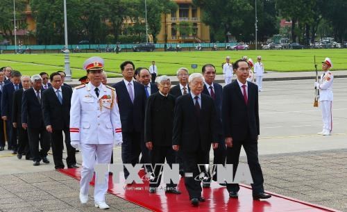 | Đoàn đại biểu Đảng, Nhà nước đặt vòng hoa và vào Lăng viếng Chủ tịch Hồ Chí Minh. Ảnh: Dương Giang/TTXVN |