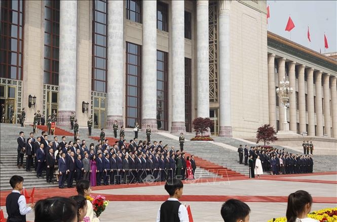 Sáng 15/4, Lễ đón chính thức Tổng Bí thư, Chủ tịch nước Tô Lâm và Phu nhân cùng Đoàn đại biểu cấp cao Việt Nam được tổ chức trọng thể tại Đại lễ đường Nhân dân theo nghi thức cao nhất dành cho nguyên thủ quốc gia. Tổng Bí thư, Chủ tịch Trung Quốc Tập Cận Bình và Phu nhân chủ trì Lễ đón.