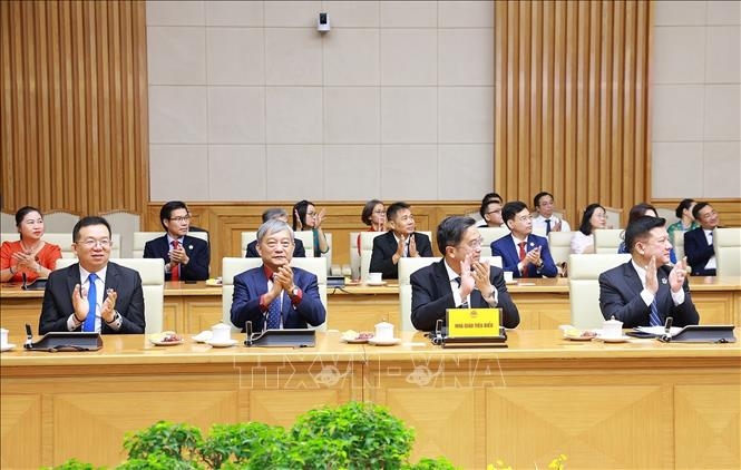 | Đại diện các nhà giáo tiêu biểu toàn quốc tham dự buổi gặp. Ảnh: TTXVN. |