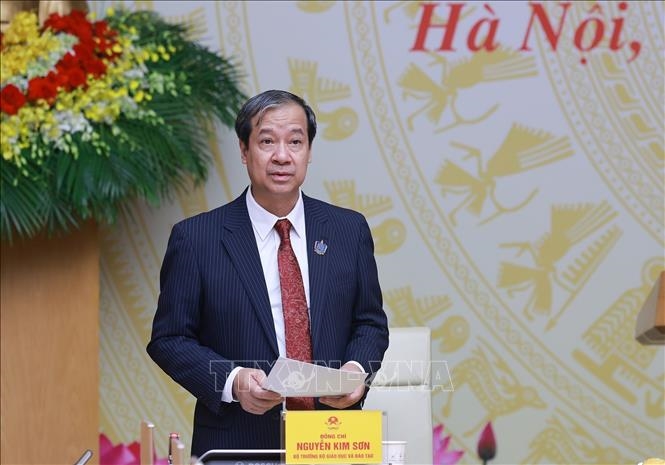 | Bộ trưởng Bộ Giáo dục và Đào tạo Nguyễn Kim Sơn phát biểu. Ảnh: TTXVN. |