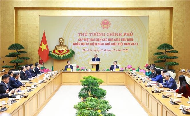 Phát biểu tại buổi gặp mặt, nhân dịp ngày Nhà giáo Việt Nam 20/11, Thủ tướng Chính phủ Phạm Minh Chính thay mặt lãnh đạo Đảng, Nhà nước, gửi lời tri ân sâu sắc tới toàn thể các thế hệ nhà giáo, các thầy, các cô trên khắp mọi miền Tổ quốc, đã luôn tâm huyết, ngày đêm cống hiến cho sự nghiệp “trồng người” vẻ vang và cao quý của dân tộc ta.