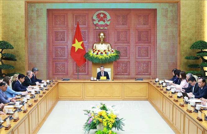 | Thủ tướng Lê Minh Hưng tiếp và làm việc với Đoàn doanh nghiệp cấp cao Hội đồng Kinh doanh Hoa Kỳ - ASEAN (USABC). Ảnh: Dương Giang/TTXVN |