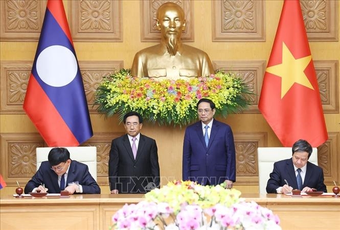 Hai bên nhất trí phối hợp triển khai hiệu quả các hiệp định, thỏa thuận về hợp tác kinh tế; giải quyết các khó khăn, vướng mắc, đề xuất các cơ chế chính sách mới phù hợp với tính chất đặc thù của quan hệ Việt Nam - Lào, tạo lập hành lang pháp lý ổn định và minh bạch, môi trường kinh doanh thuận lợi cho doanh nghiệp hai nước, giúp giải phóng nguồn lực thúc đẩy hợp tác thương mại, đầu tư. Hai Thủ tướng nhất trí tiếp tục nâng cao chất lượng hợp tác giáo dục - đào tạo, trong đó hai bên ưu tiên hợp tác phát triển nguồn nhân lực chất lượng cao và đào tạo cán bộ lãnh đạo, quản lý các cấp; tăng cường giao lưu về văn hóa, thể thao và du lịch; thúc đẩy hợp tác trong lĩnh vực nông nghiệp sạch, thương mại điện tử, chuyển đổi số và đổi mới sáng tạo.