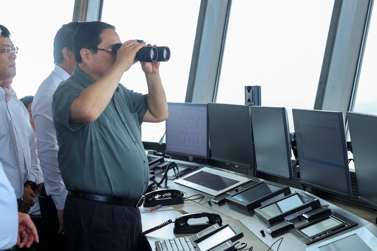 | Thủ tướng thăm đài quan sát không lưu- bộ não của sân bay - Ảnh: VGP/Nhật Bắc |