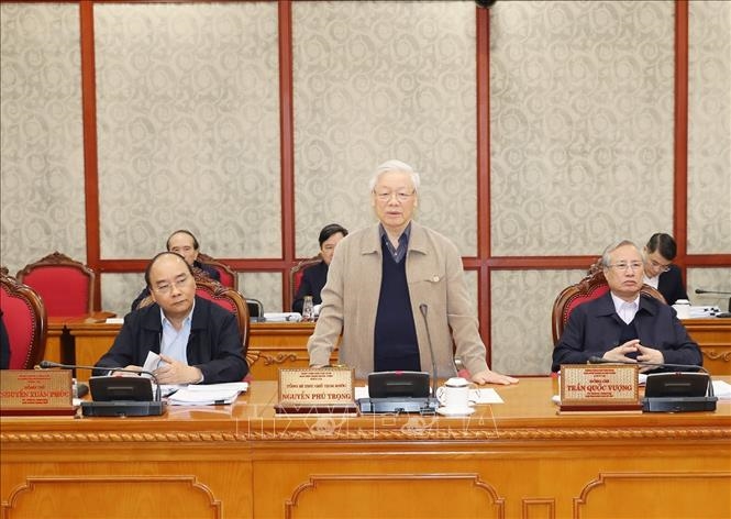 | Tổng Bí thư, Chủ tịch nước Nguyễn Phú Trọng phát biểu chỉ đạo cuộc họp. Ảnh: Trí Dũng/TTXVN |