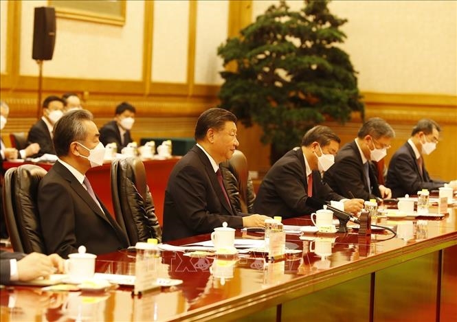 Tổng Bí thư, Chủ tịch Trung Quốc Tập Cận Bình bày tỏ tin tưởng, dưới sự lãnh đạo của Đảng Cộng sản Việt Nam do Tổng Bí thư Nguyễn Phú Trọng đứng đầu, nhân dân Việt Nam nhất định sẽ thực hiện thắng lợi các mục tiêu, nhiệm vụ do Đại hội Đảng lần thứ XIII đề ra, sẽ sớm đưa Việt Nam cơ bản trở thành nước công nghiệp theo hướng hiện đại, thực hiện thành công mục tiêu dân giàu, nước mạnh, dân chủ, công bằng, văn minh.