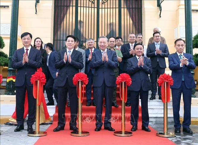 | Tổng Bí thư Tô Lâm, Chủ tịch nước Lương Cường dự Lễ khánh thành dự án cải tạo, sửa chữa, nâng cấp, xây mới trụ sở làm việc Cơ quan Chủ tịch nước, tại số 2 Lê Thạch – Bắc Bộ phủ. |