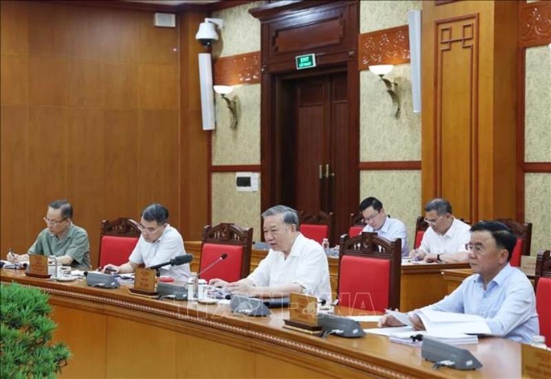 | Tổng Bí thư Tô Lâm chủ trì họp Ban Bí thư về Dự thảo sửa đổi, bổ sung một số điều của Hiến pháp năm 2013. (Ảnh: Thống Nhất/TTXVN) |
