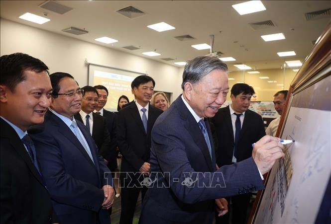 Nhân dịp này, Tổng Bí thư Tô Lâm, Thủ tướng Chính phủ Phạm Minh Chính và các đồng chí lãnh đạo Đảng, Nhà nước thực hiện nghi thức phát động Ngày hội Đổi mới sáng tạo Việt Nam năm 2025 và kết hợp Khai mạc Triển lãm quốc tế Đổi mới sáng tạo Việt Nam 2025.