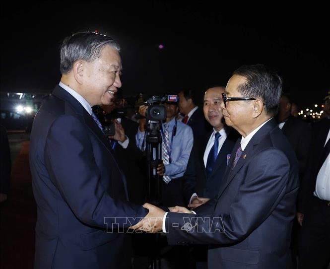 | Tổng Bí thư Tô Lâm rời Phnom Penh về nước. Ảnh: Thống Nhất/TTXVN |