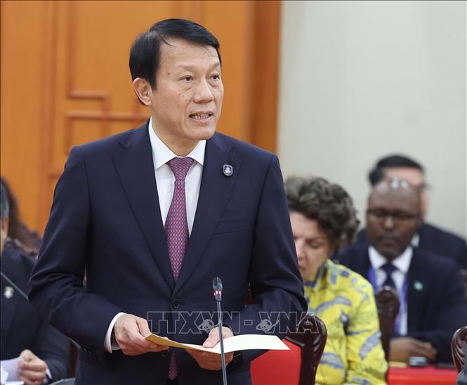 | Tổng Bí thư Tô Lâm phát biểu tại buổi tiếp Trưởng đoàn các nước tham dự Lễ mở ký Công ước Hà Nội. Ảnh: Thống Nhất/TTXVN |