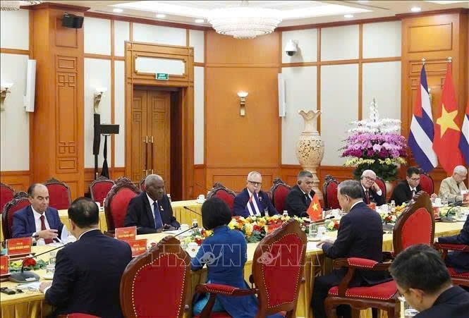 Tổng Bí thư Tô Lâm nhấn mạnh Việt Nam sẽ luôn sát cánh cùng Cuba tiếp tục thắt chặt mối quan hệ anh em mẫu mực, đoàn kết gắn bó, thủy chung giữa Đảng, Nhà nước và nhân dân hai nước. Nhân dịp này, thay mặt Đảng, Nhà nước và nhân dân Việt Nam, Tổng Bí thư Tô Lâm trân trọng cảm ơn Đảng, Nhà nước, nhân dân Cuba đã luôn đồng hành, ủng hộ Việt Nam trong sự nghiệp đấu tranh giải phóng dân tộc, tái thiết đất nước, thể hiện qua câu nói bất hủ của Tổng Tư lệnh Fidel Castro: “Vì Việt Nam, Cuba sẵn sàng hiến dâng cả máu của mình”, là nguồn cổ vũ lớn lao đối với sự nghiệp bảo vệ, xây dựng Tổ quốc của nhân dân Việt Nam.