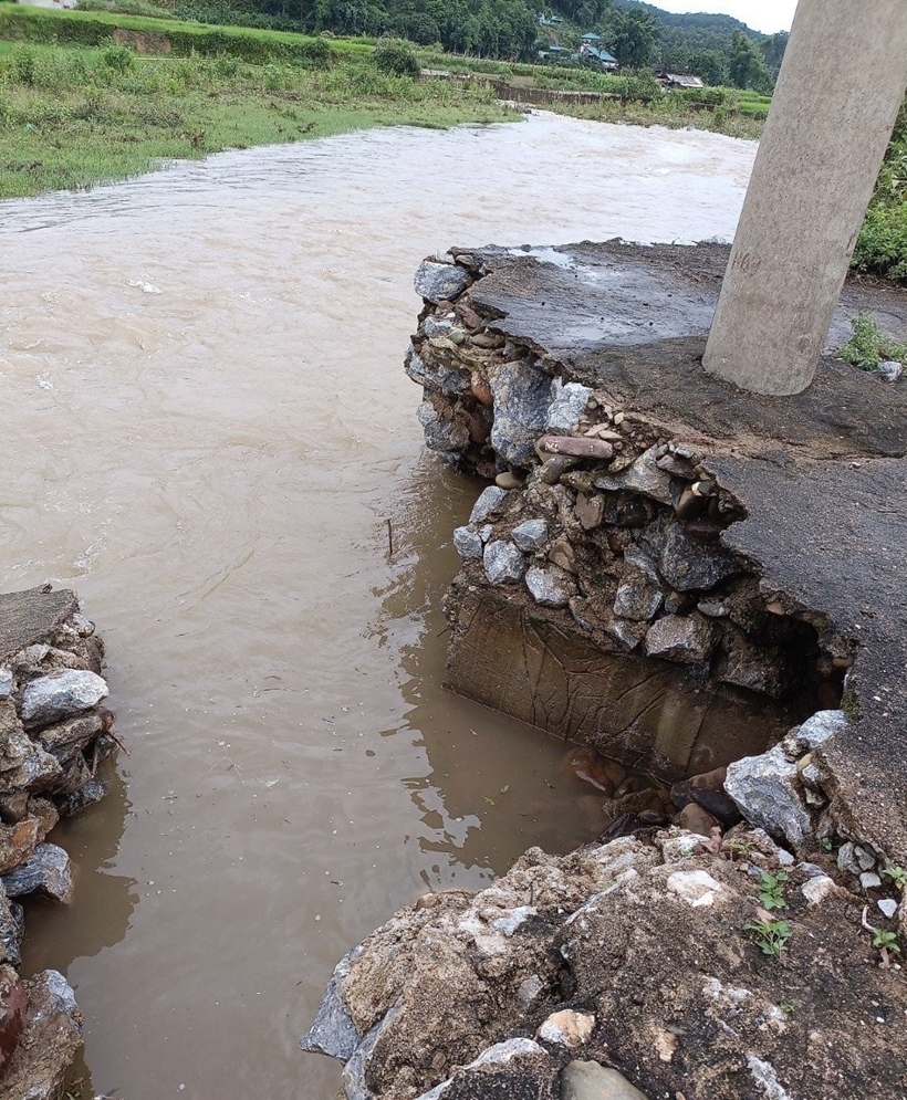| Tại Quốc lộ 32 tại địa phận thuộc hai xã Khao Mang, Hồ Bốn của huyện Mù Cang Chải, tỉnh Yên Bái khu vực này đang bị mất thông tin, giao thông tê liệt, toàn huyện Mù Cang Chải mất điện, các phương tiện không thể qua lại, kể cả đi bộ, sạt lở taluy dương nghiêm trọng. |