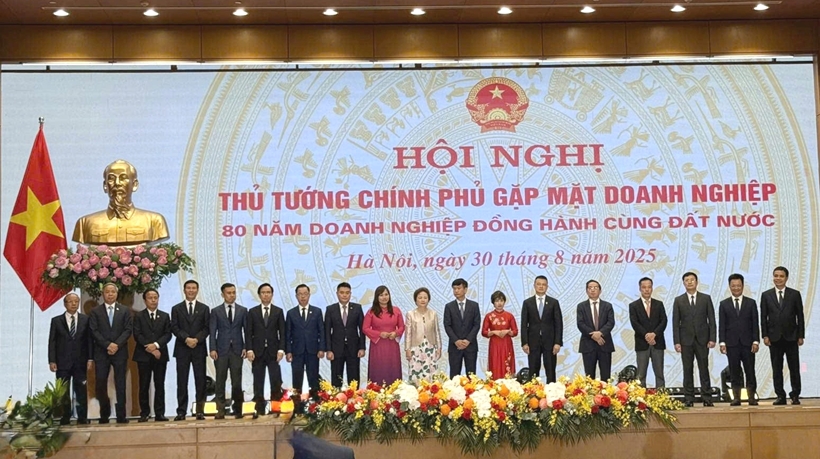 | Đại diện BAC A BANK cùng lãnh đạo các doanh nghiệp tại Hội nghị "80 năm doanh nghiệp đồng hành cùng đất nước". |