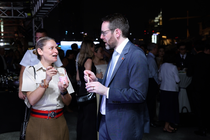 Trong không gian sang trọng của sự kiện đón tàu Hải quân Hoàng gia Anh tại TP HCM, nhiều khách quốc tế bày tỏ sự ấn tượng và thích thú khi lần đầu trải nghiệm những ly kem, sữa chua hay trà kombucha mát lành từ Vinamilk.
