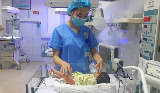 | Bác sỹ thăm khám tại đơn nguyên sơ sinh khoa Nhi Bệnh viện A Thái Nguyên. |