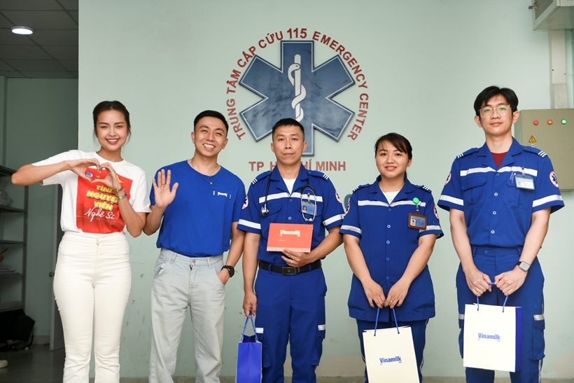 Không gian Trung tâm Cấp cứu 115 TP HCM trong buổi chiều giáp Tết vẫn vang lên tiếng bộ đàm và âm thanh xe cứu thương ra vào liên tục. Giữa nhịp làm việc khẩn trương ấy, sự xuất hiện của Hoa hậu Ngọc Châu cùng đoàn nhân viên Vinamilk mang đến một niềm vui bất ngờ cho cả ca trực.