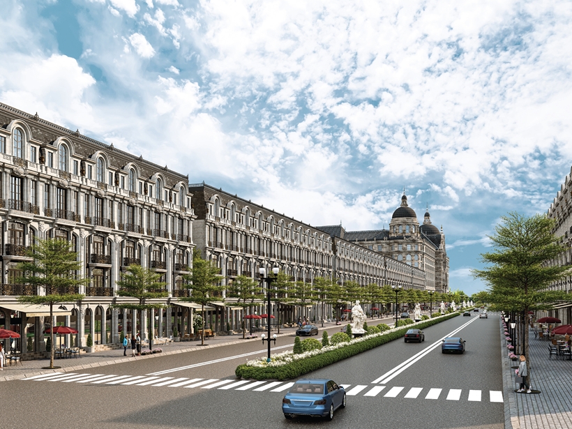 Với cấu trúc Grand Shophouse 5 tầng và Elegant Shophouse 4 tầng, sản phẩm cho phép phân tách công năng rõ rệt, tạo ra “đa dòng tiền”: tầng 1 - 2 dành cho kinh doanh, các tầng trên linh hoạt để ở, làm văn phòng hoặc vận hành căn hộ dịch vụ. Đáng chú ý, thay vì phát triển trung tâm thương mại tập trung, dự án chủ trương xây dựng các dãy phố thương mại mở, hướng đi vừa tăng mật độ khai thác thực tế vừa tạo sức hút thương mại tự nhiên khi kết hợp với hệ tiện ích 5 sao: bệnh viện nghỉ dưỡng, trường học quốc tế và các sự kiện thường xuyên như trình diễn ánh sáng 3D Mapping, Hologram.