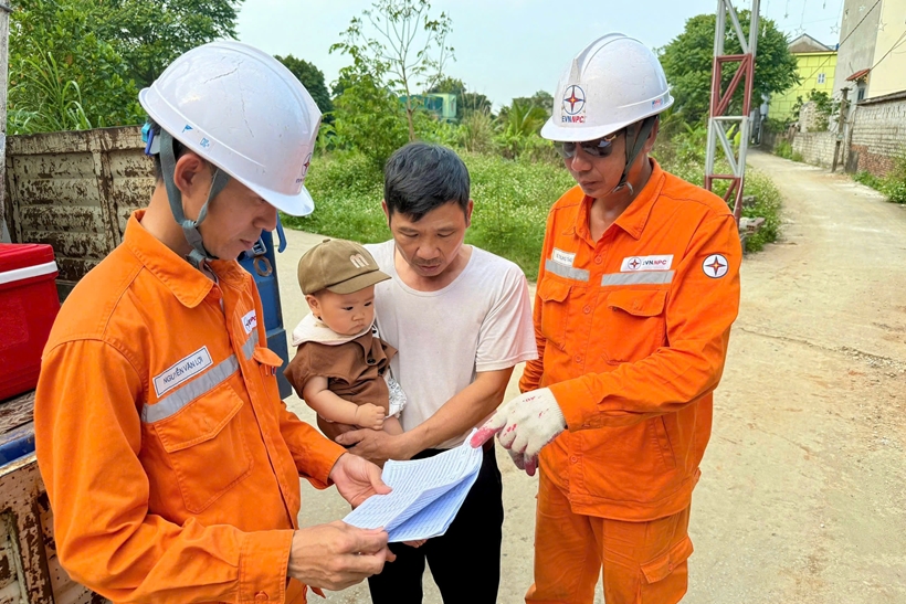 Công nhân Điện lực trực thuộc PC Thanh Hóa hướng dẫn khách hàng sử dụng điện an toàn, tiết kiệm và hiệu quả năm 2025.