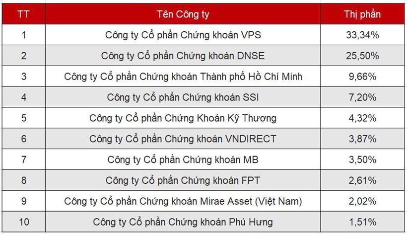 Về thị phần chứng khoán cơ sở, trong Quý 1/2026, DNSE cũng góp mặt trong Top 10 thị phần môi giới cổ phiếu trên thị trường UPCoM với 2,49% thị phần.