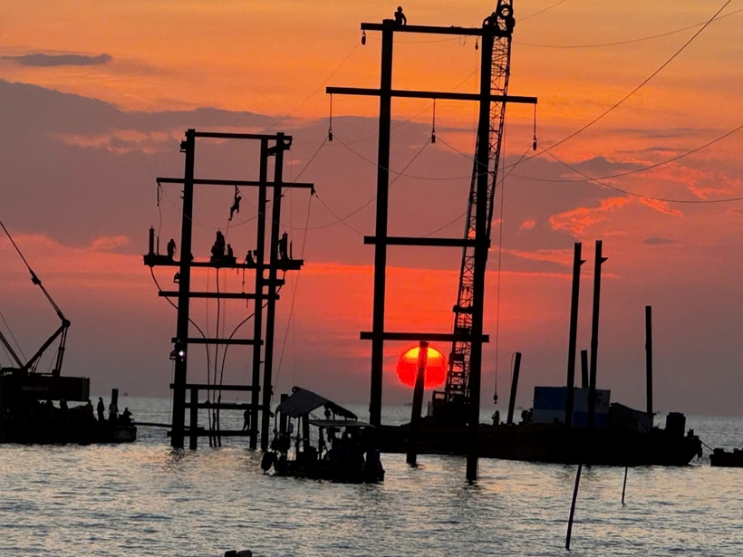 | Cán bộ, kỹ sư công nhân EVNSPC, PC An Giang và các đơn vị liên quan khẩn trương thi công ngày, đêm để khắc phục sự cố cáp ngầm 110kV Hà Tiên - Phú Quốc, khôi phục cấp điện hoàn toàn cho đặc khu Phú Quốc. |
