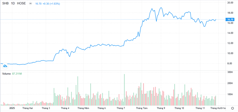 | Diễn biến cổ phiếu SHB từ đầu năm. |