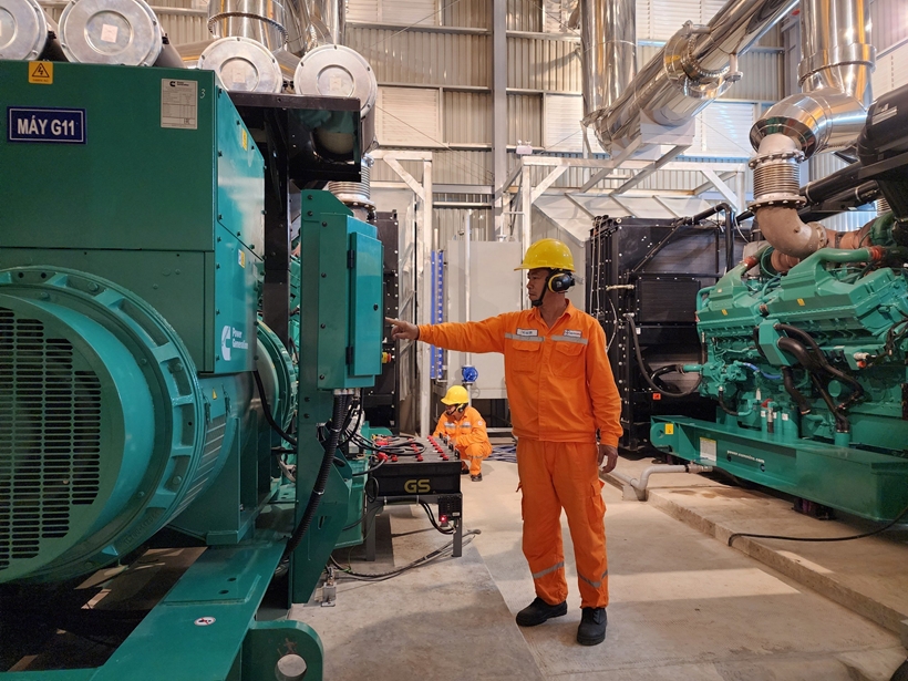 | Kiểm tra vận hành các tổ máy phát Diesel tại nhà máy điện An Hội Ảnh: EVNSPC). |