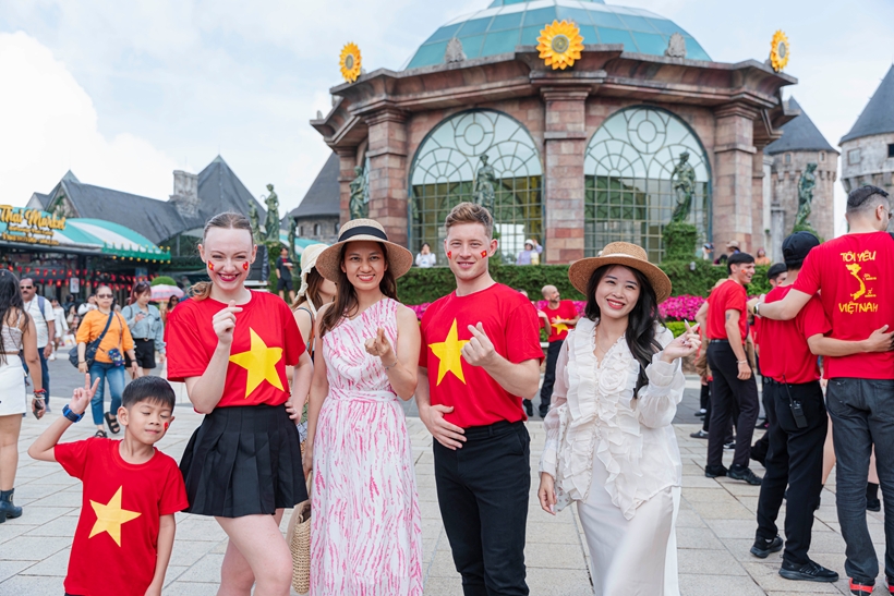 Hành trình bước vào "xứ sở thần tiên" được hâm nóng ngay từ chân núi với những giai điệu Cách mạng hào hùng, khơi gợi niềm tự hào dân tộc. Khi cáp treo đưa bạn chạm đến đỉnh mù sương, một không gian rợp trời cờ hoa sẽ hiện ra, nơi cây Cầu Vàng huyền thoại trở nên kiêu hãnh hơn bao giờ hết trong ngày hội non sông.