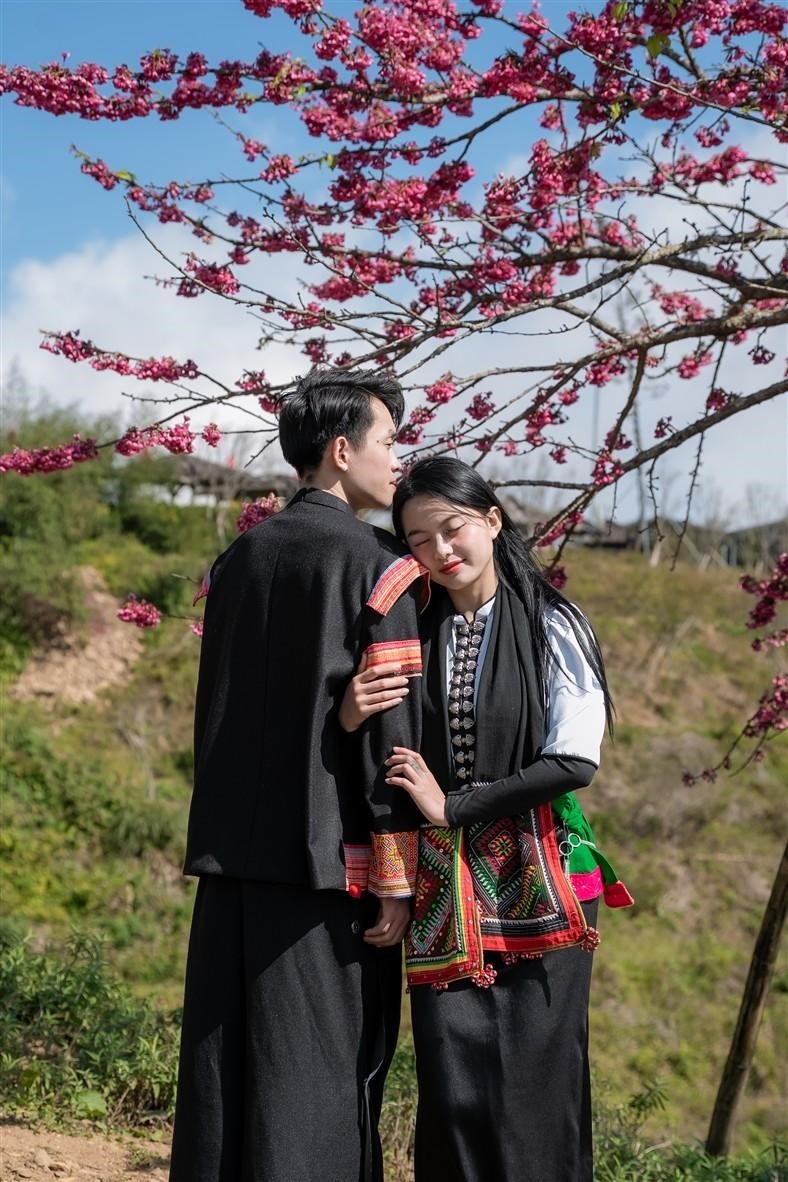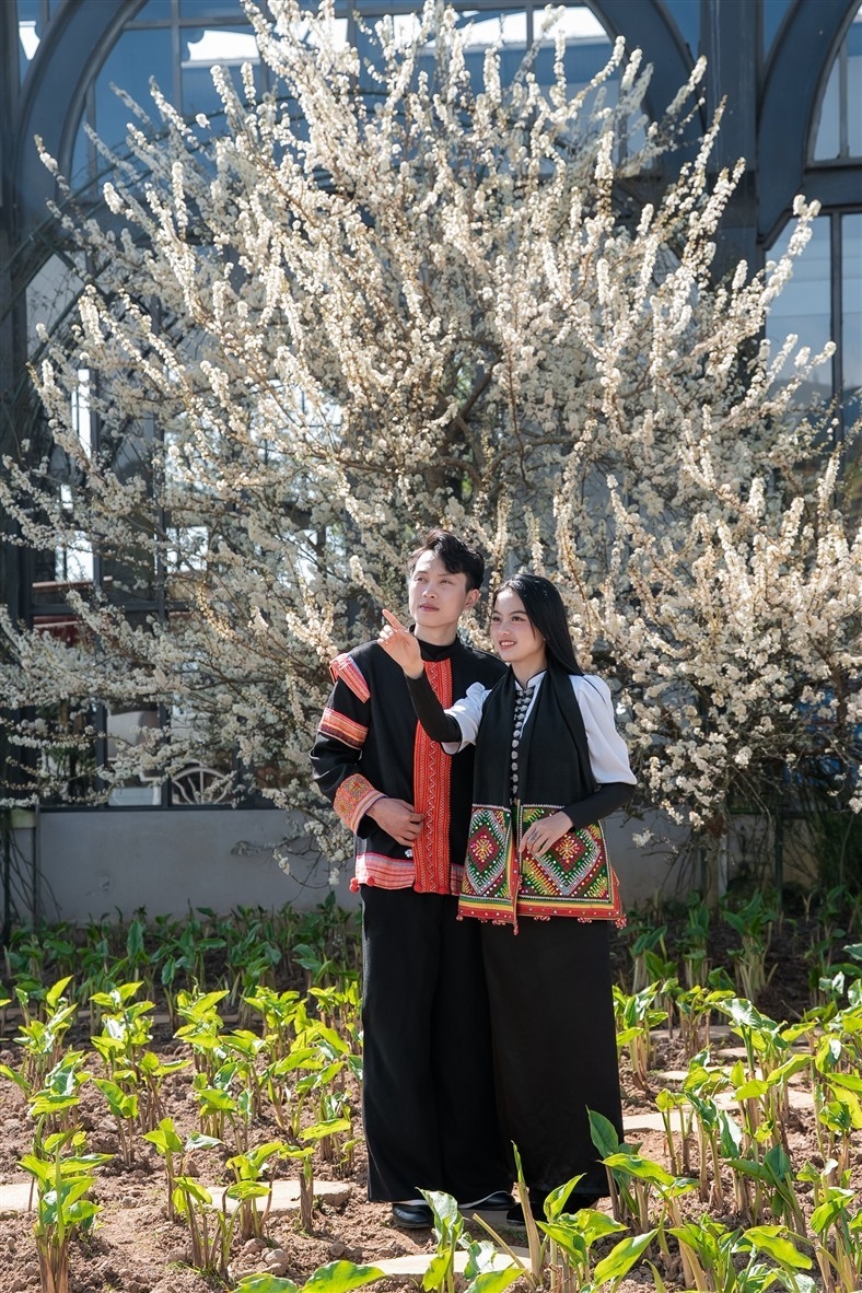 Những ngày qua, cây mận cổ thụ này thu hút các cặp nam thanh nữ tú trong trang phục dân tộc hay những bộ váy xòe duyên dáng ghi lại khoảnh khắc rạng rỡ dưới tán hoa.