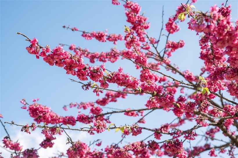 Những cánh hoa mỏng manh, mang sắc hồng ngọt ngào rung rinh trong nắng, tạo nên khung cảnh mùa xuân tưng bừng đến sớm trên đỉnh Fansipan.