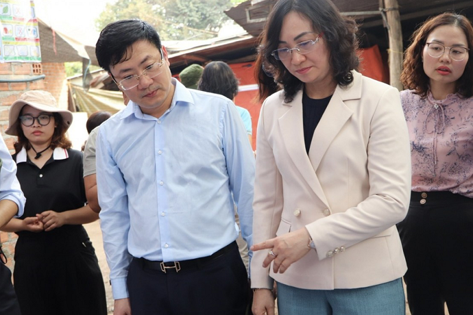 | Thứ trưởng Bộ Công Thương Phan Thị Thắng trong một chuyến tham quan các sản phẩm thuốc lá do Tổng Công ty Thuốc lá Việt Nam sản xuất. |