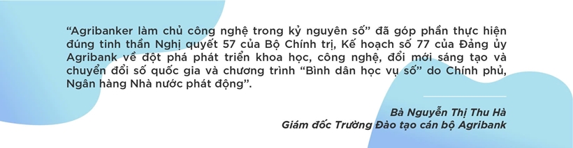 “Agribanker làm chủ công nghệ trong kỷ nguyên số” đã góp phần thực hiện đúng tinh thần Nghị quyết 57-NQ/TW của Bộ Chính trị, Kế hoạch số 77-KH/ĐU của Đảng ủy Agribank về đột phá phát triển khoa học, công nghệ, đổi mới sáng tạo và chuyển đổi số quốc gia và chương trình “Bình dân học vụ số” do Chính phủ, Ngân hàng Nhà nước phát động” - Giám đốc Trường Đào tạo cán bộ nhấn mạnh.