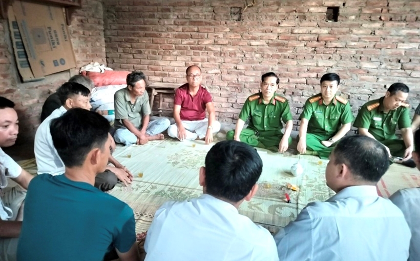 | Đoàn công tác đại diện Công an huyện Mỹ Đức đến nhà xin lỗi gia đình bị hại. |